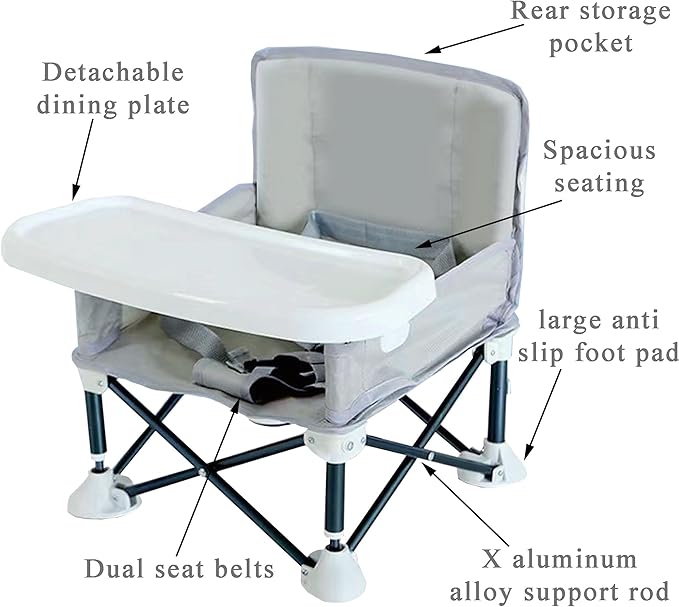 Pliable et Portable : Conçue pour se plier rapidement, cette chaise haute en alliage d'aluminium est légère et facile à transporter.